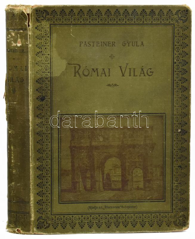 Description: Római világ. Emlékkönyv a magyar tanárok olaszországi tanulmányútjáról. Csengeri János és Geréb József közreműködésével szerkesztette Pasteiner Gyula. Bp., 1899, Athenaeum Irodalmi és Nyomdai Rt. Kiadói kopottas, kissé sérült gerincű, kissé foltos egészvászon kötésben, Gottermayer N.-féle kötés.
