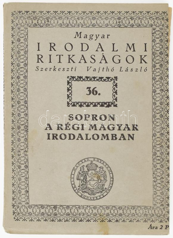 Házi Jenő, vitéz: Sopron a régi magyar irodalomban. Kiad. és sajtó alá rend. - -. (Bp. 1937), Kir. Magy. Egyetemi Ny. 120 p. (Magyar Irodalami Ritkaságok XXXVI.) Korabeli papírkötésben,