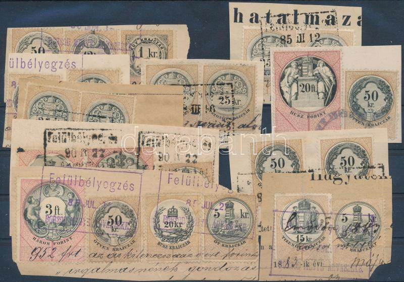 24 db régi okmánybélyeg kivágásokon, stecklapon