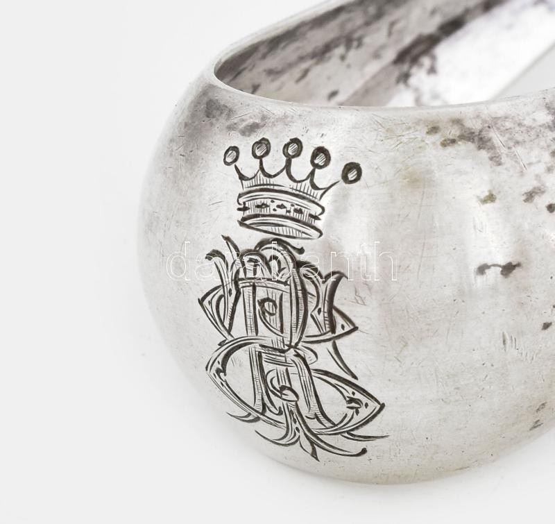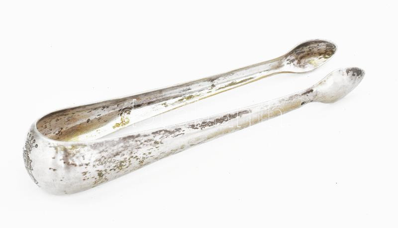 Antik ezüst (Ag) monogramos - nemesi koronás cukorfogó, jelzett, h: 15,5 cm, nettó: 47 g