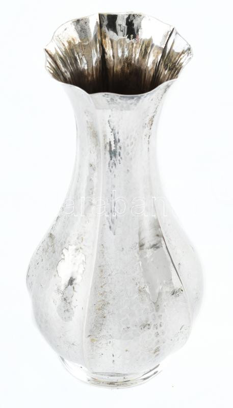 Ezüst (Ag) kalapált váza, jelzett, m: 18 cm, nettó: 257 g