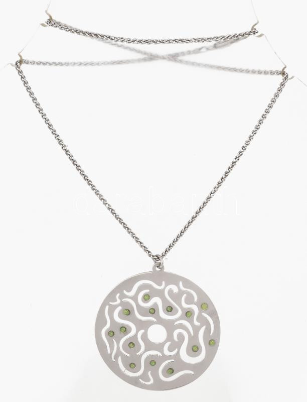 Ezüst(Ag) fantáziaszemes nyaklánc áttört kerek köves medállal, h: 42 cm, d: 4,5 cm, bruttó: 9,4 g