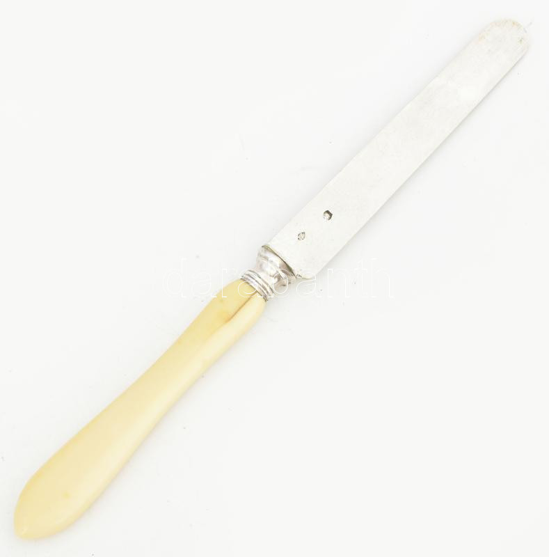 Ezüst(Ag) gyümölcskés csont nyéllel, jelzett, h: 20 cm, bruttó: 28,5 g