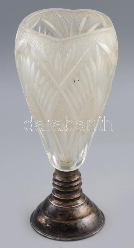 Kristály váza, ezüst (Ag) talpazatban, jelzett, m: 28,5 cm