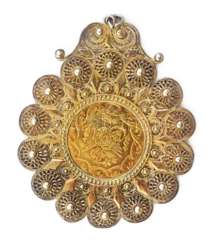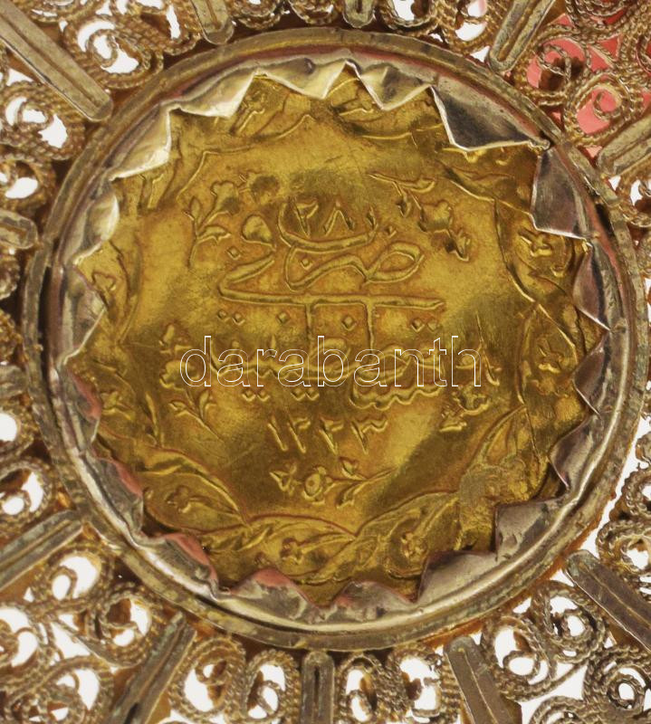 Oszmán Birodalom 1835. (1223) 1 Cedid Mahmudiye Au "II. Mahmud", dekoratív jelzetlen Ag keretben (érme: 1,6g/0.830, keret: ~10g/51x43mm) T:VF,F Ottoman Empire 1835. (1223) 1 Cedid Mahmudiye Au "Mahmud II", in decorative Ag frame without hallmark (coin: 1,6g/0.830, frame: ~10g/51x43mm) C:VF,F KM#645