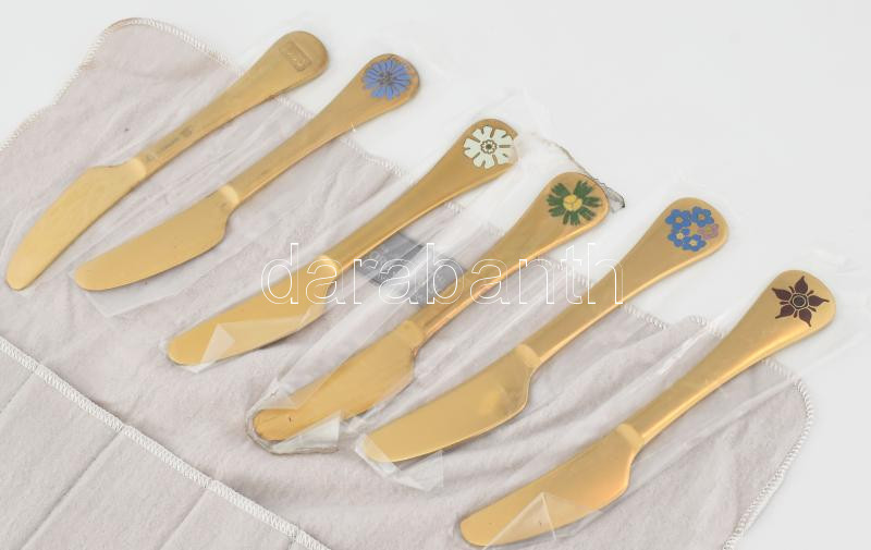 cca 1975-185 4 db Ezüst(Ag) Georg Jensen dán dísz kés jelzett, h: 16,5 cm, nettó: 59, g / dv, összesen 354 g Aranyozott, hibátlan, eredeti tokban