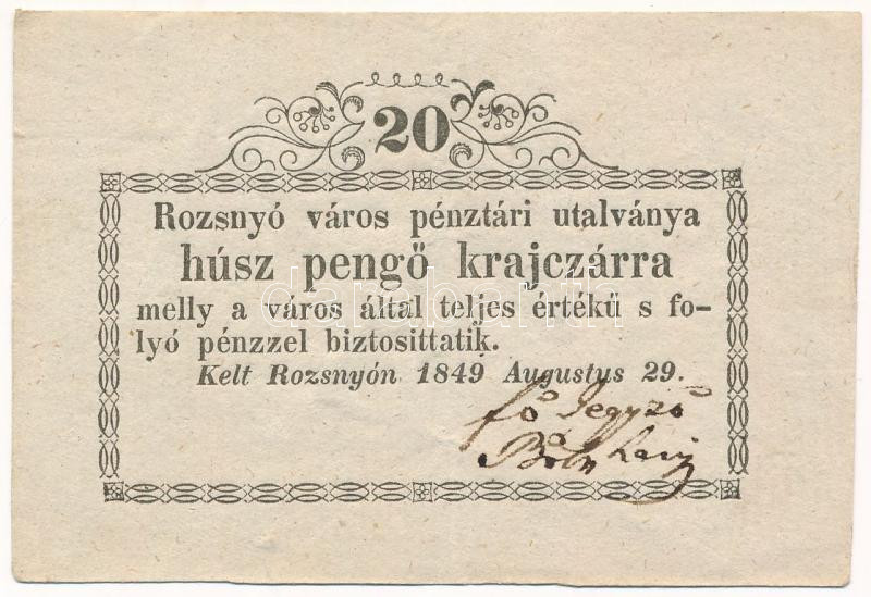 https://www.darabanth.com/en/473-Online-auction/473.0/Numismatics/Emergency-Coins-and-Notes~1500007/Rozsnyo-1849-20kr-Rozsnyo-varos-penztari-utalvanya-TF-Hungary-Rozsnyo-1849-20-Kreuzer-~II3161936