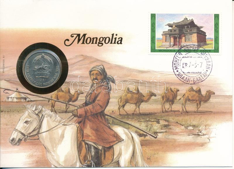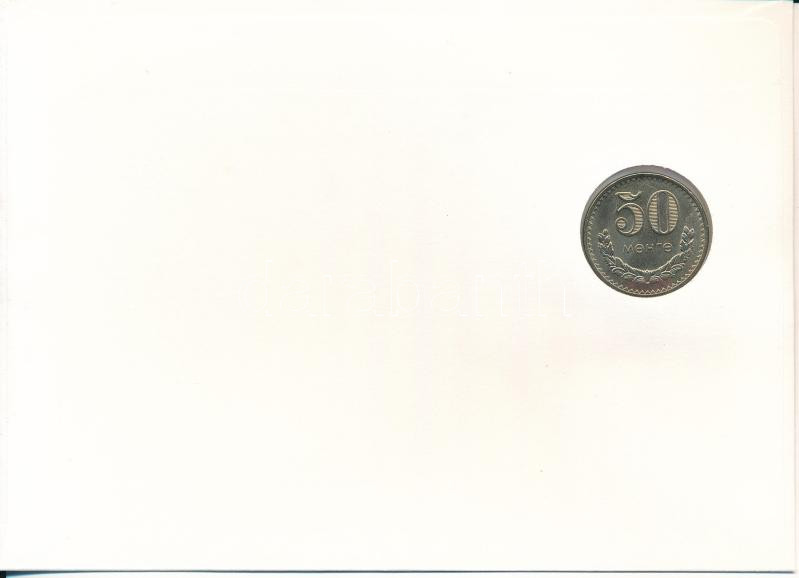 Mongólia 1981. 50M Cu-Ni felbélyegzett borítékban, bélyegzéssel, német... https://www.darabanth.com/en/473-Online-auction/473.0/Numismatics/Envelopes-with-Coins-and-Banknotes~1500005/Mongolia-1981-50M-Cu-Ni-felbelyegzett-boritekban-belyegzessel-nemet-nyelvu-leirassal-T~II3187613