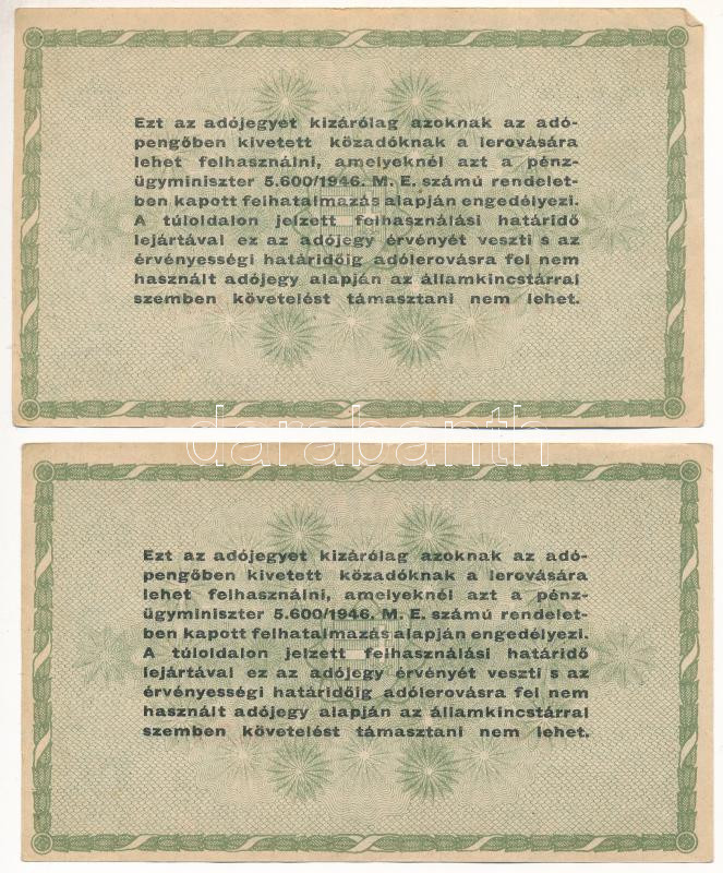 1946. 50.000AP (2x) közeli sorszámok "A 13 06.583 - A 13 06.587" T:XF