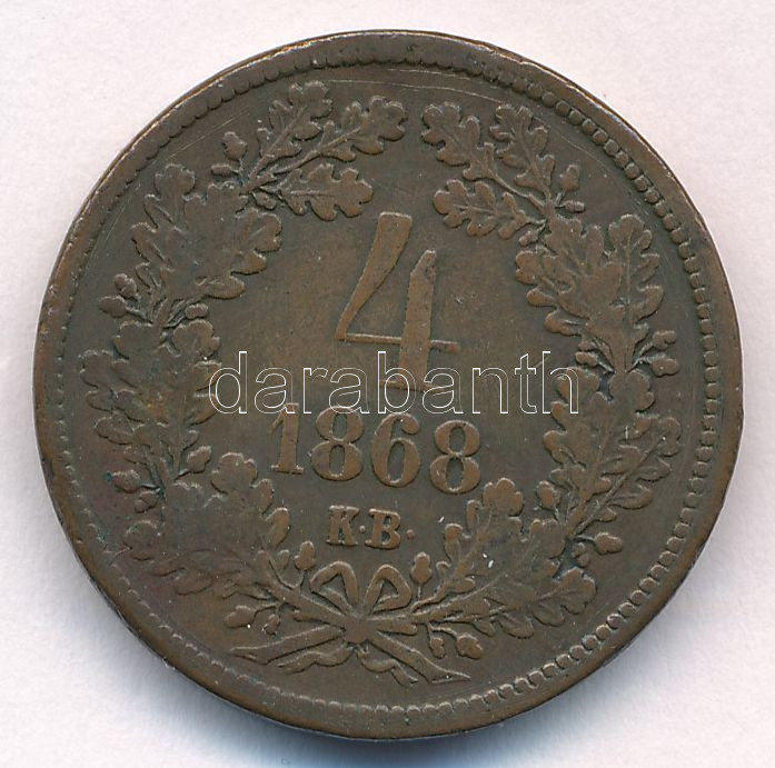https://www.darabanth.com/en/473-Online-auction/473.0/Numismatics/Hungarian-coins-and-coins-with-Hungarian-mint-marks~1500009/1868KB-4kr-Cu-TVF-Adamo-M71~II3210320