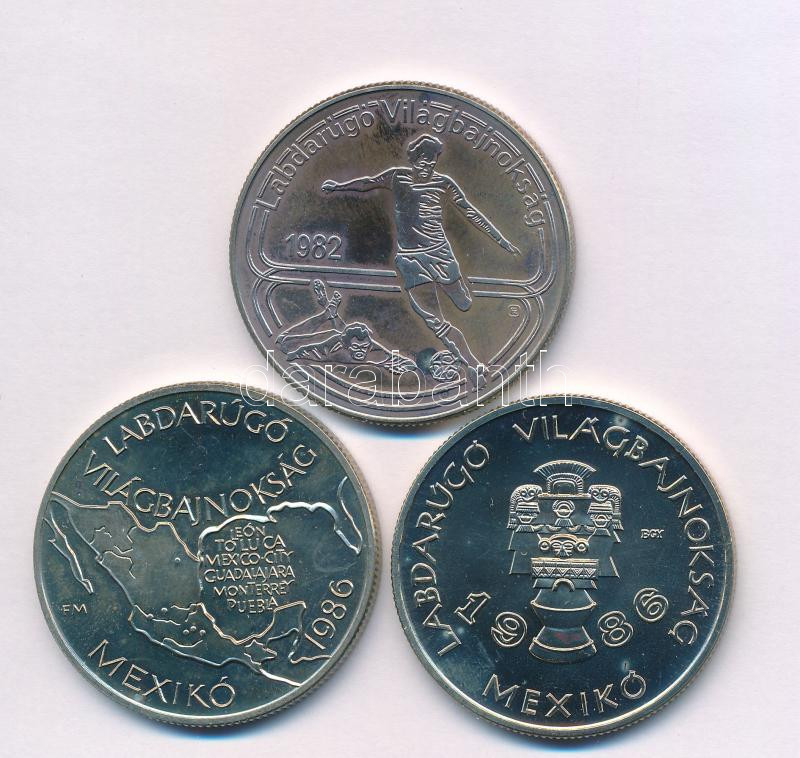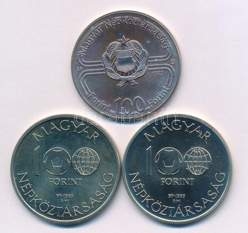 1982. 100Ft Cu-Ni "Labdarúgó világbajnokság 1982" kapszulában + 1985. 100Ft alpakka "Labdarúgó Világbajnokság 1986. - Mexikó térkép" kapszulában + 100Ft alpakka "Labdarúgó Világbajnokság 1986. - Mexikó" kapszulában T:BU