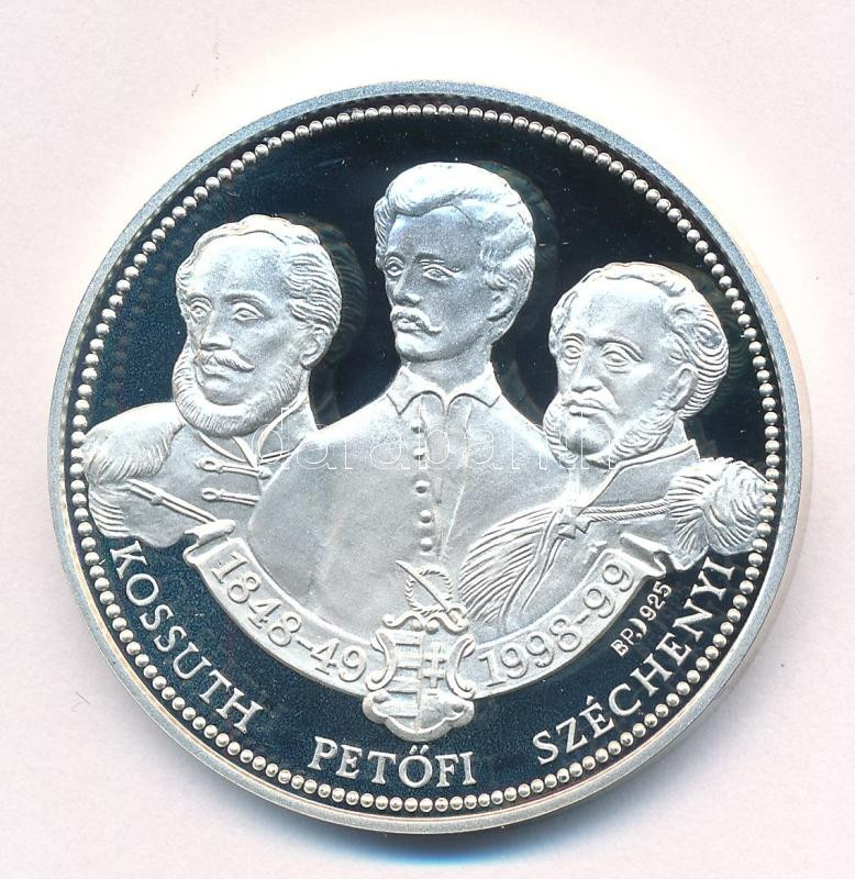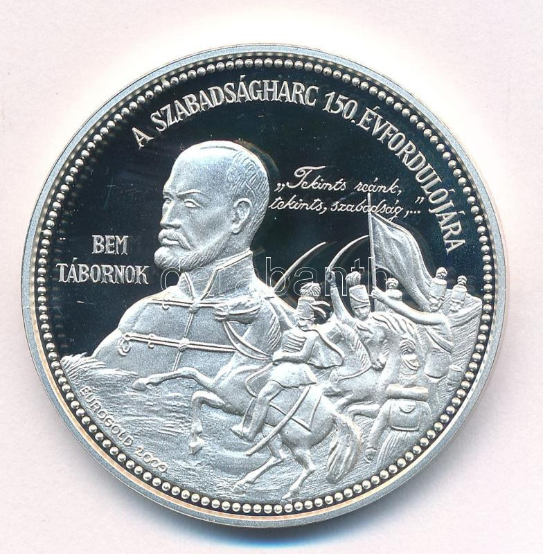 Description: Szabó Géza (1939-) 1999. "A Szabadságharc 150.évfordulója - Kossuth, Petőfi Széchenyi / Bem tábornok" Ag emlékérem (31,19g/0.925/42,5mm) kapszulában T:PP