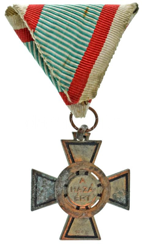 1943. "Tűzkereszt II. fokozata" oxidált hadifém kitüntetés mellszalaggal T:VF Hungary 1943. "Fire Cross, 2nd Class" war metal decoration with ribbon C:VF NMK 447.