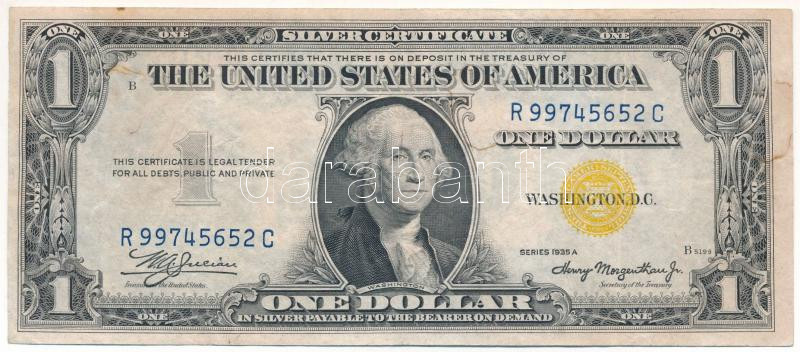 Amerikai Egyesült Államok 1935A 1$ "Silver Certificate - kisméretű" sárga pecsét, Észak-Afrikai katonai kiadás, "William Alexander Julian - Henry Morgenthau Jr." T:F hátoldali nyomat két helyen elszíneződött