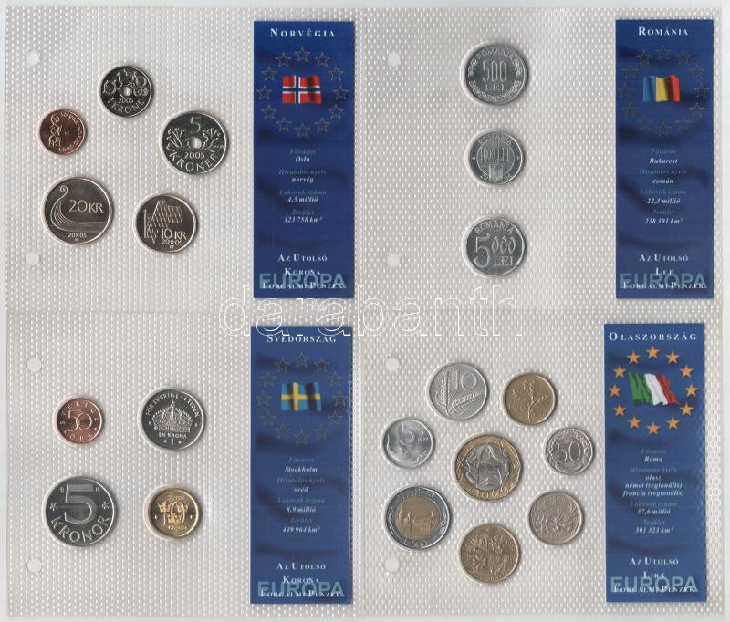 "Európa utolsó pénzei" 4db vákuumcsomagolt forgalmi összeállítás, összesen 20db érmével, benne Olaszország, Norvégia, Románia és Svédország T:UNC,AU "Europe's last coins" 4pcs coin set in vacuum packing with a total of 20 coins, within Italy, Norway, Romania and Sweden C:UNC,AU