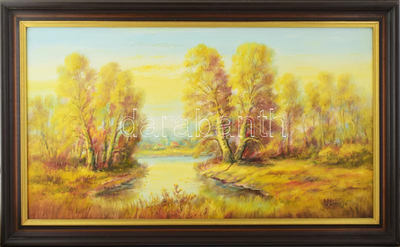 Böröczky Ferenc (1921-2004): Szeptember. Olaj, farost. Jelzett. fakeretben. 50x90 cm.