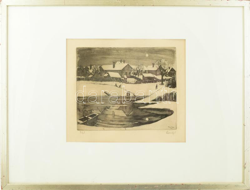 Élesdy István (1912-1987): Tél. Rézkarc, papír, jelzett. Üvegezett, ki...