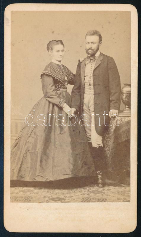 cca 1865 Házaspár portréja, keményhátú fotó Borsos József pesti műterm...