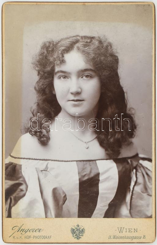 Description: cca 1890 Czullik Betti, Czullik Ágostnak, a Liechtenstein hercegi kertek igazgatójának lányának portréja, keményhátú fotó, Angerer bécsi műterméből, 16,5x10 cm