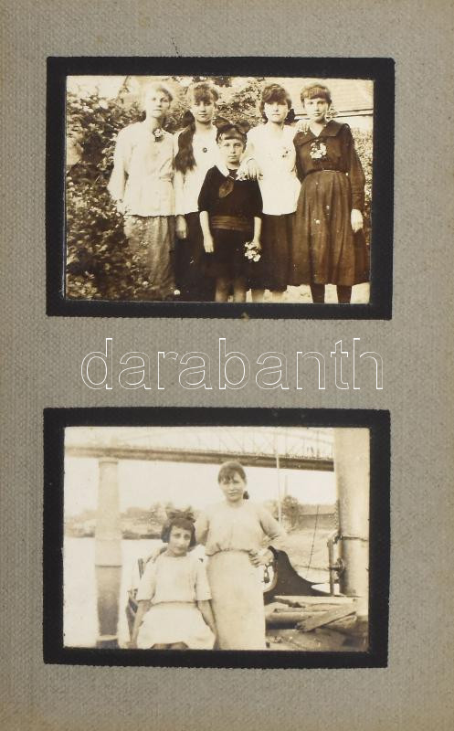 cca 1920/30 48 darab kisméretű fotó albumba rendezve, közte hajózás témájú Duna-parti képekkel, 4x5,5 cm