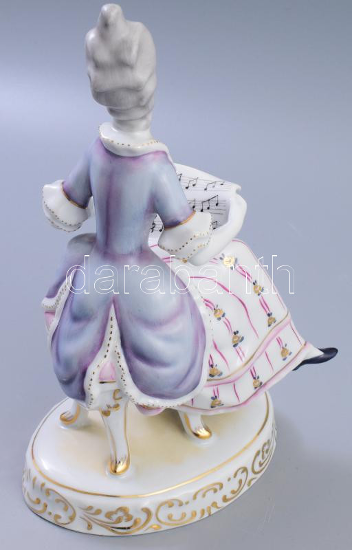 Éneklő. Hollóházi barokk nő porcelán figura, jelzett, kézzel festett, ...