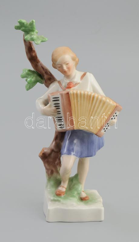 Herendi Úttörő lány harmonikával. Jelzett, kézzel festett, hibátlan, m: 17 cm