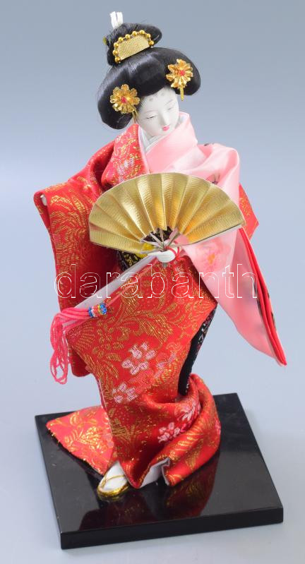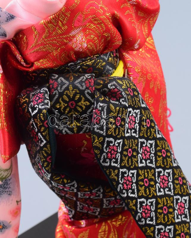 Kínai Gésa porcelán baba, hímzett selyem ruhával 30 cm Hibátlan