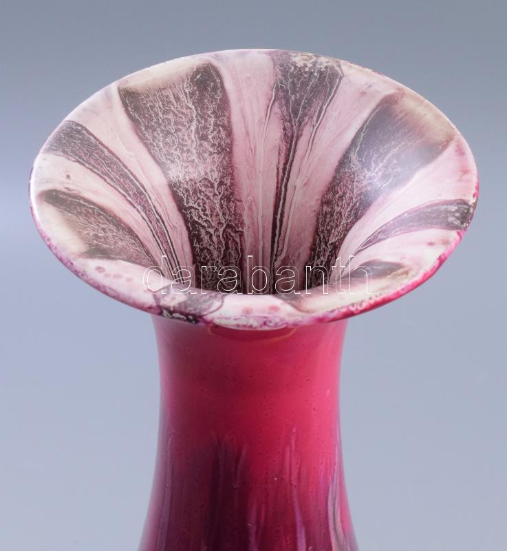Kispesti porcelán váza, egyedi mázas. Kézzel festett, jelzett, alján minimális lepattanással ami oldalról nem látszik. m: 42 cm
