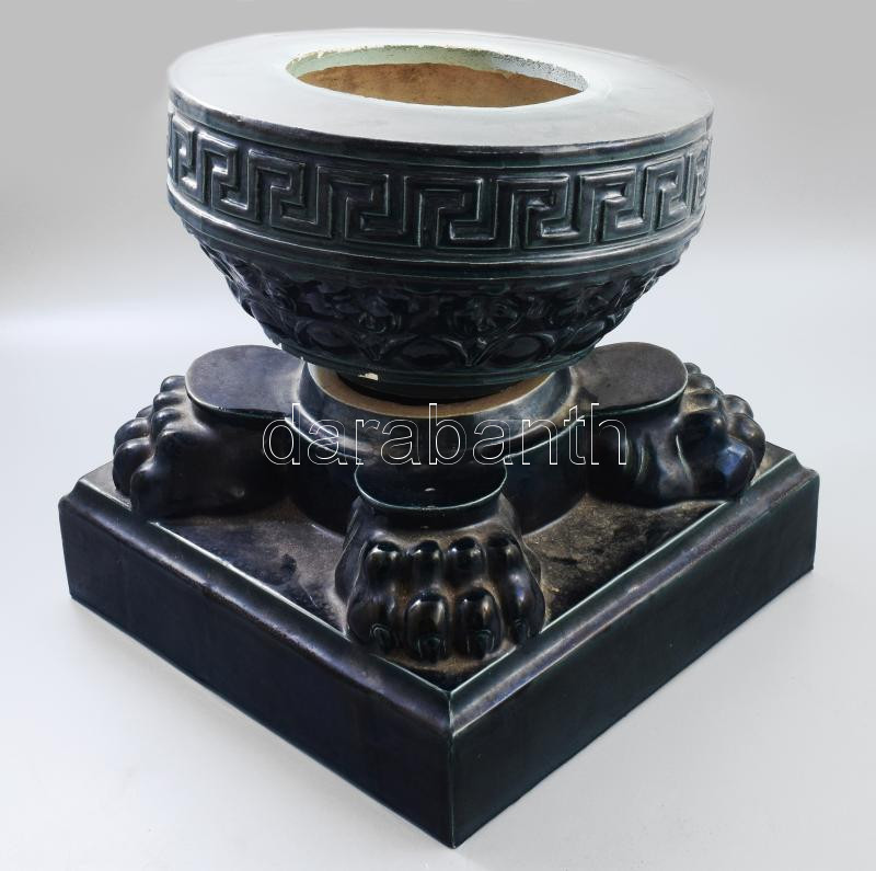 Zsolnay antik irizáló zöld mázas posztamens oroszlánkörmös lábazata és... https://www.darabanth.com/en/473-Online-auction/473.0/Porcelain-ceramics-glassware/Chinaware-Porcelain~500007/Zsolnay-antik-irizalo-zold-mazas-posztamens-oroszlankormos-labazata-es-kaspo-resze-Maza~II3212462