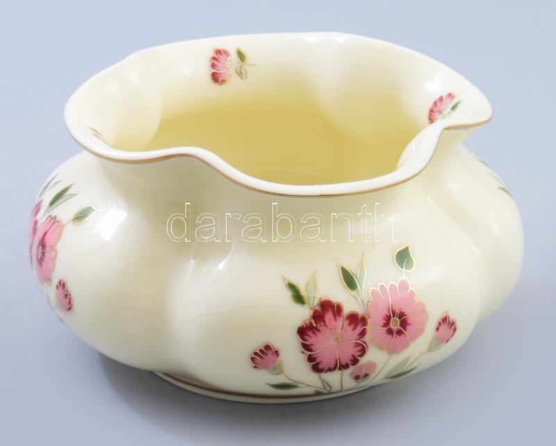 https://www.darabanth.com/en/473-Online-auction/473.0/Porcelain-ceramics-glassware/Chinaware-Porcelain~500007/Zsolnay-viragmintas-holyagos-vaza-Jelzett-hibatlan-mazrepedessel-d-13-cm~II3212540