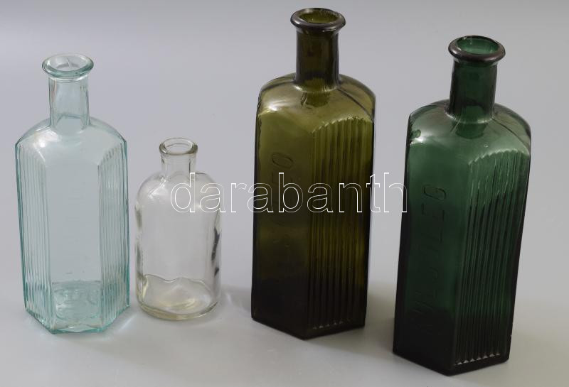 4 darab antik patikai üveg, klf színben, m: 12-21 cm