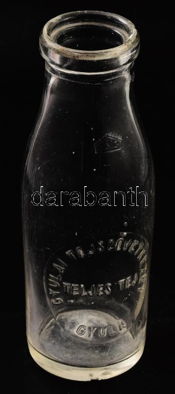 Gyulai Tejszövetkezet, Teljes tej, Gyula, tejes üveg, lepattanással, m: 20,5 cm