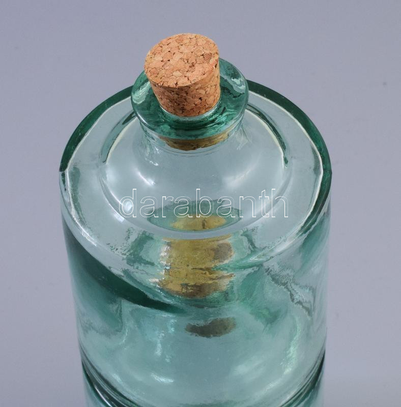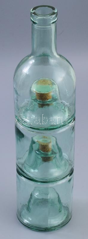 Három részből álló design üvegpalack, zölden színezett üveg, a három rész külön tölthető, m: 33,5 cm