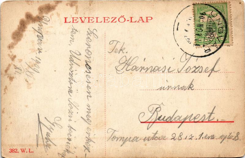 1909 Ungvár, Uzshorod, Uzhhorod, Uzhorod; Pénzügyi palota. W.L. 382. / Financial Palace (kopott sarkak / worn corners)