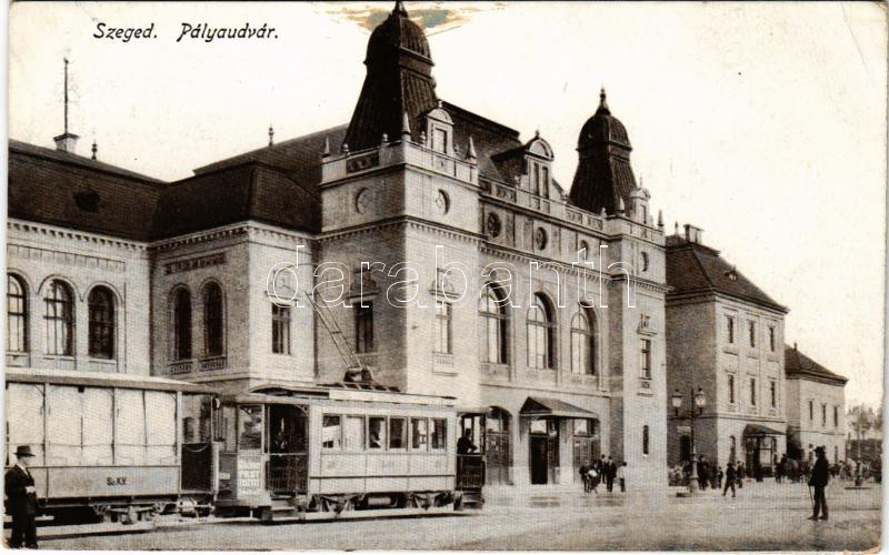 1919 Szeged, Pályaudvar, vasútállomás, villamos (EK)