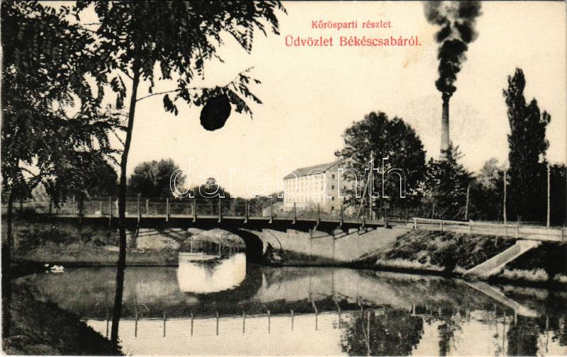 Békéscsaba, Körös-parti részlet, gőzmalom, híd (fl)