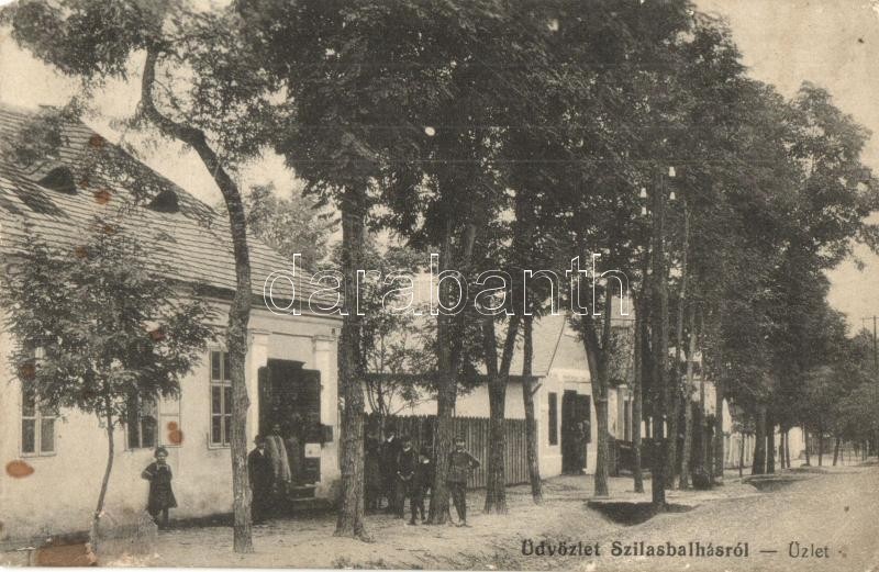 Szilasbalhás, Mezőszilas; utcakép üzlettel (EM)