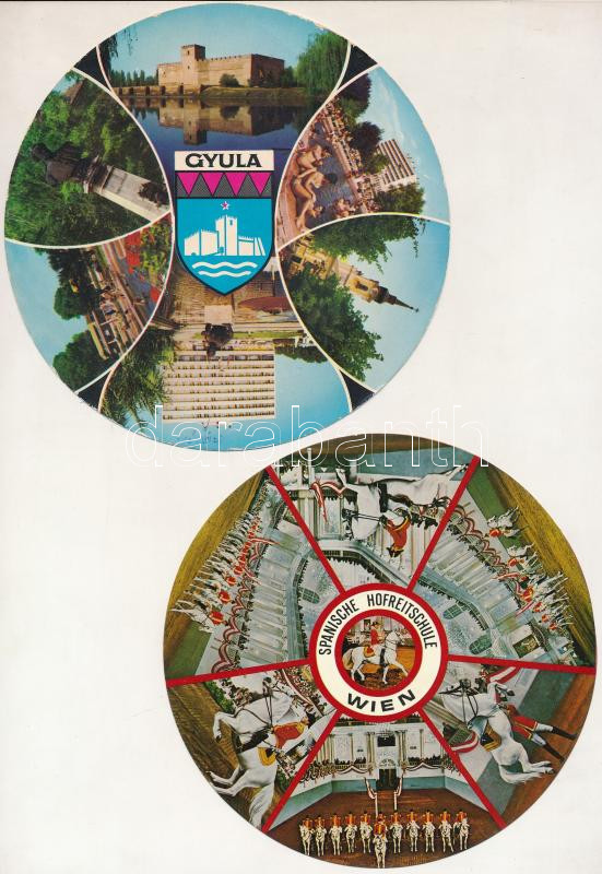 23 db MODERN magyar és külföldi kör alakú város képeslap / 23 modern European circular town-view postcards