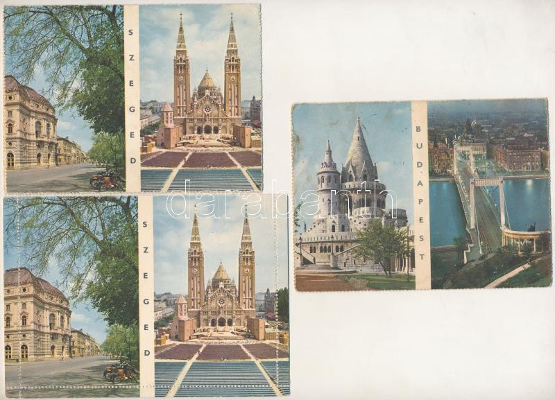 3 db MODERN magyar zárt levelezőlap: Budapest és Szeged