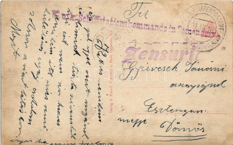 1918 Smederevo, Semendria, Szendrő; Donau-Fähre / Nagy komp / WWI large ferry + "K.u.K. Schiffstationskommando in Semendria" (fl)