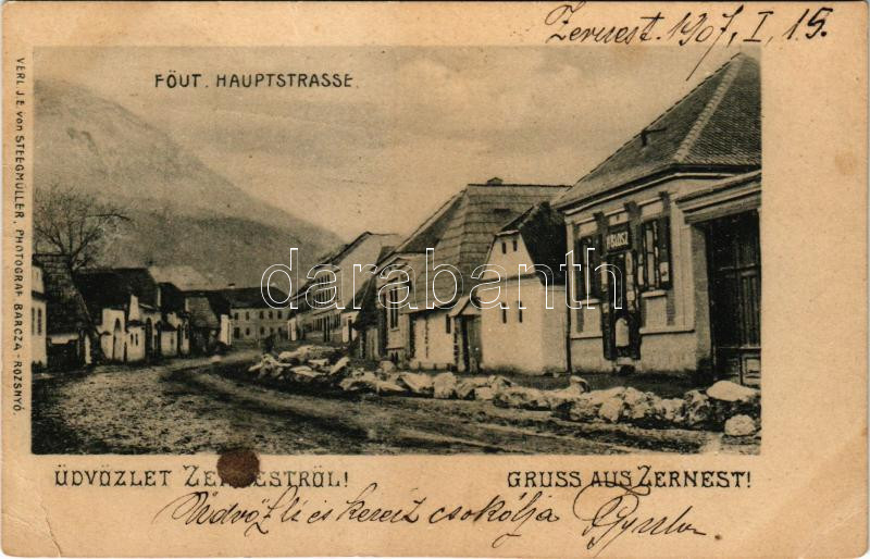 https://www.darabanth.com/en/473-Online-auction/473.0/Postcards/Transylvania~2000007/1907-Zernest-Zernyest-Zarnesti-Fo-utca-Blosz-uzlete-J-E-Steegmuller-kiadasa-Hauptstrass~II3205092
