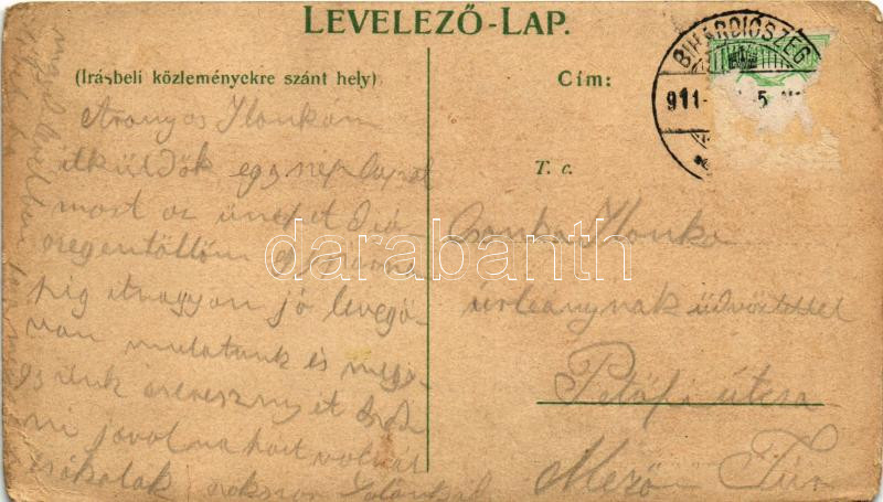 1911 Bihardiószeg, Bihar-Diószeg, Diosig; Berger Ignácz és fia fa és sóraktára, üzlet, Református templom, Izraelita templom, zsinagóga (építette Séri J.K.S.), Kossuth szobor. Deutsch József kiadása / shop, Calvinist church, synagogue, statue, monument. Art Nouveau, floral, litho (EK)