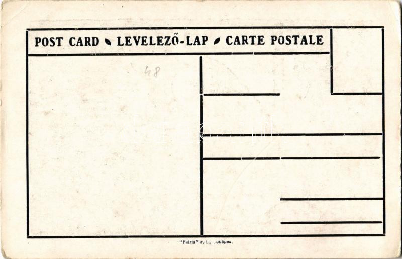 Description: Kolozsvár, Cluj; Magyar és román nemzetiségek népesség aránya. Címer, Pátria rt. kiadása / Percentage of Hungarian and Romanian population. Irredenta art postcad with coat of arms s: Pólya Tibor (EK)