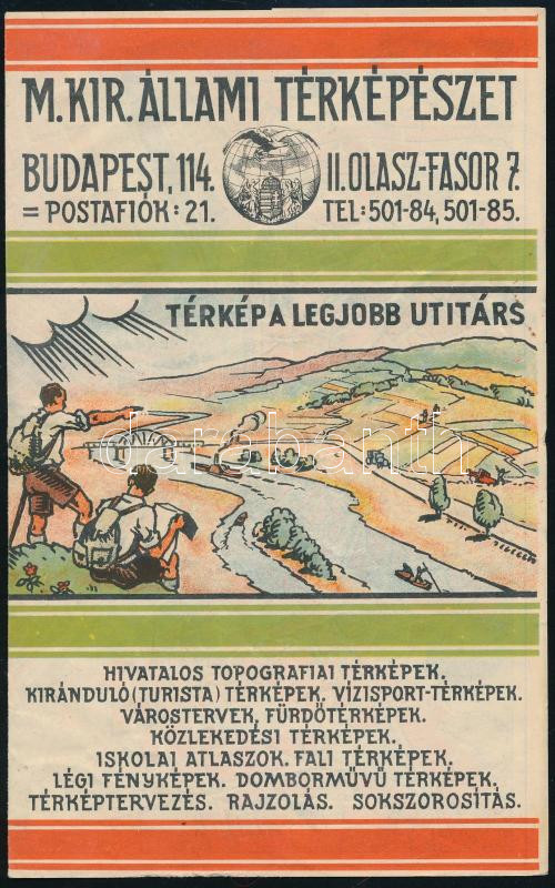 1931 A M. Kir. Állami Térképészet színes reklámprospektusa, a budapest...