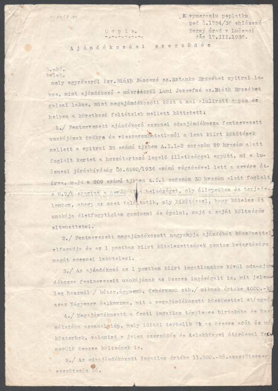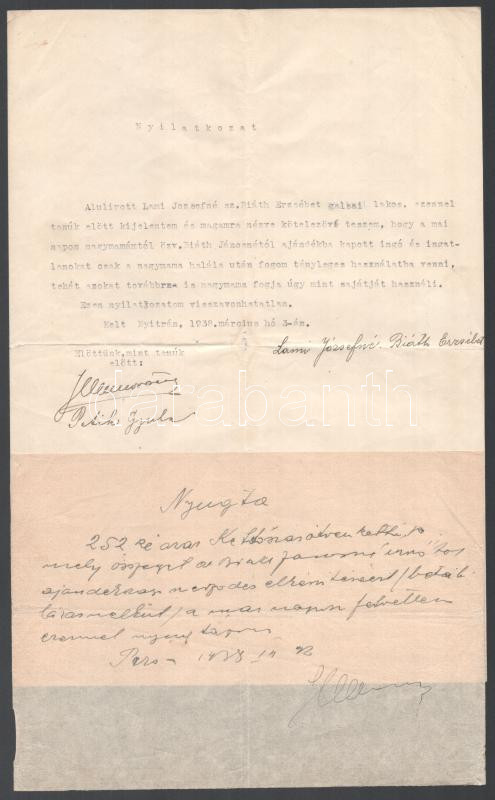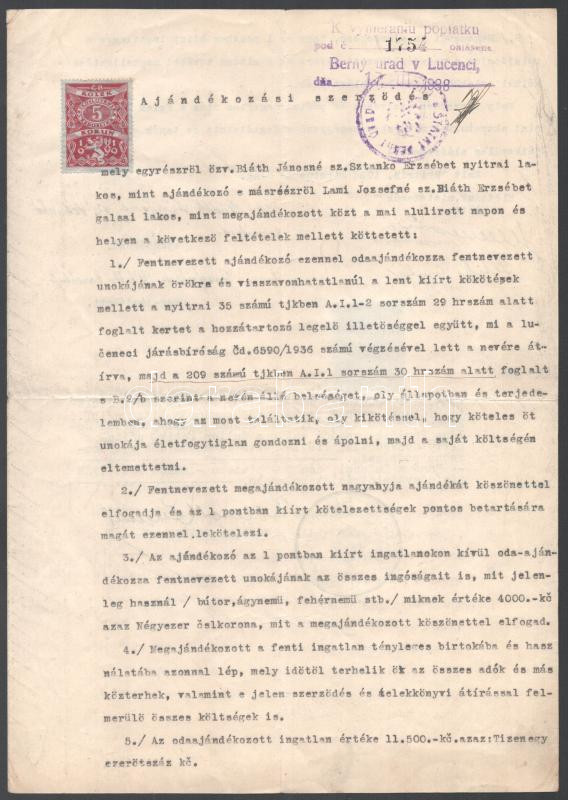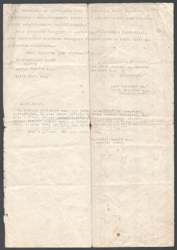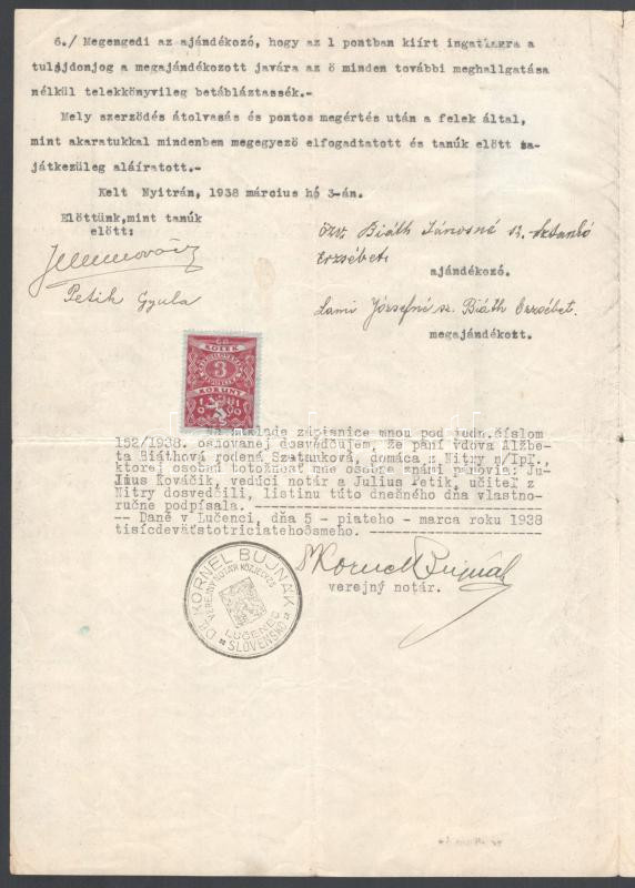 1938 Nyitra, adásvételi szerződés magyar nyelven, szlovák hitelesítéss...
