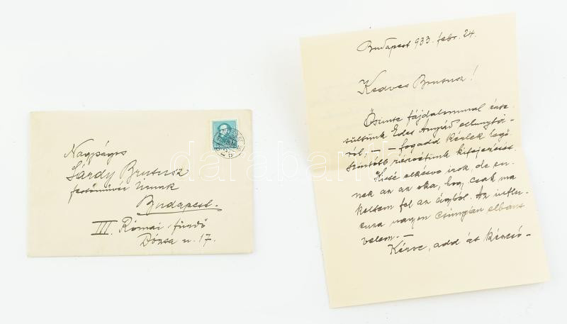 1933 Bp., Major Jenő (1871-1945) festőművész saját kezűleg írt levele ... https://www.darabanth.com/en/474-Online-auction/474.0/Art-and-other-collectibles/Historical-documents-manuscripts~500021/1933-Bp-Major-Jeno-1871-1945-festomuvesz-sajat-kezuleg-irt-levele-Sardy-Brutus-1892-1970~II3221862