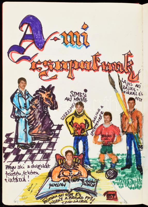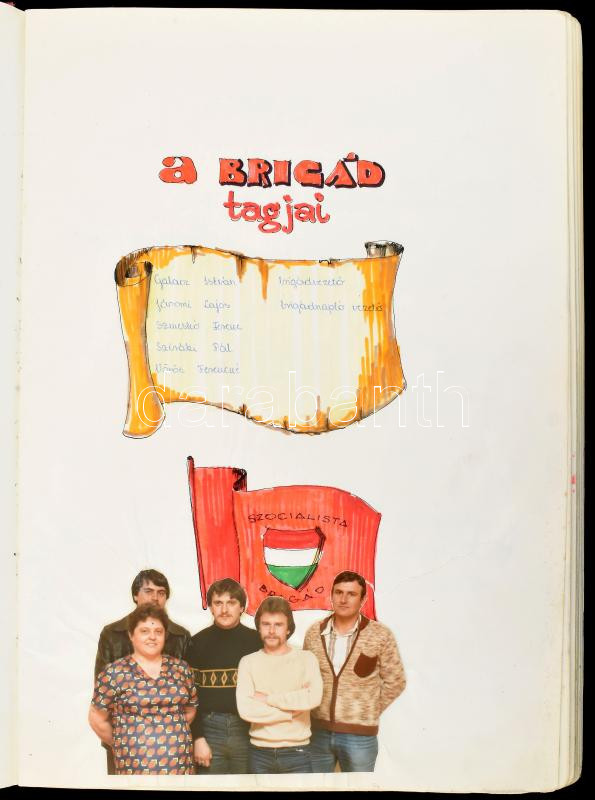 1979-1982 Brigádnapló, Fáklya szocialista brigád, rengeteg bejegyzéssel, beragasztott fotókkal, dokumentumokkal