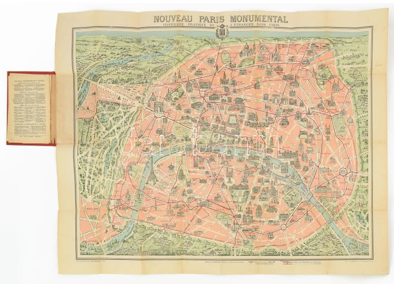 Description: cca 1920 Noveau Paris Monumental / Párizs nevezetességeinek jegyzéke és térképe, (14) p.+ 1 t. Kiadói vászonborítóban, kissé sérült, térkép mérete: 75x55 cm