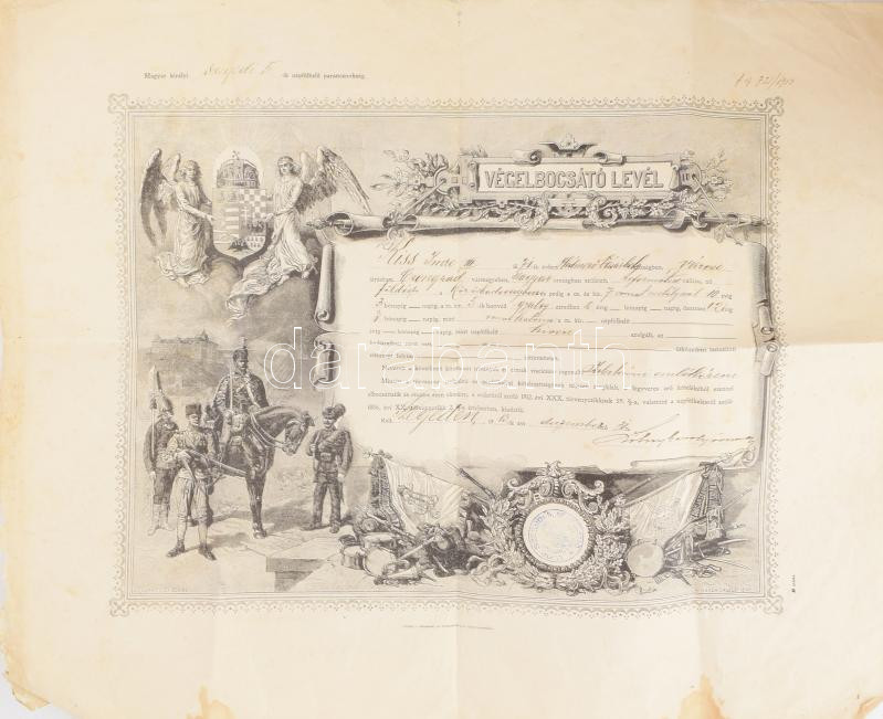 https://www.darabanth.com/en/474-Online-auction/474.0/Art-and-other-collectibles/Military~1000019/1913-Katonai-vegelbocsajto-level-a-7-vonat-osztalynal-szolgalt-katona-reszere-68x48-cm-Szelen~II3214570