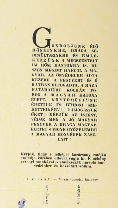 1942 Karácsonya harcoló honvédeinké és hozzátartozóiké! - emléklap, Bo...
